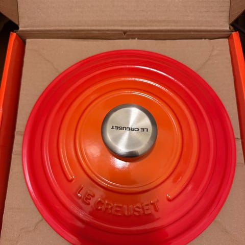Ubrukt ildfast form 20cm med glasslokk som er ypperlig til tacolefser, pannekaker, vaffler og lapper. Holder maten varm under hele måltidet. Tåler oppvaskmaskin og varmeovn. Le Creuset kitchn tilbords eva solo.