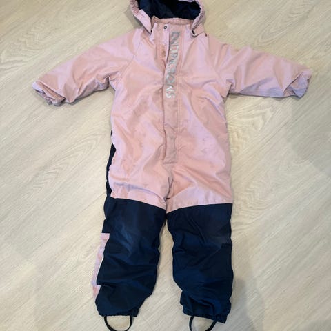 Den er designet for barn og har funksjonelle detaljer som hette og refleks på ermer og ben for økt synlighet.