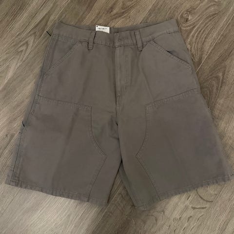 Carhartt shorts i beige farge, laget av bomullsmateriale. Størrelse XL. Shortsene har et klassisk design med lommer og beltehemper.