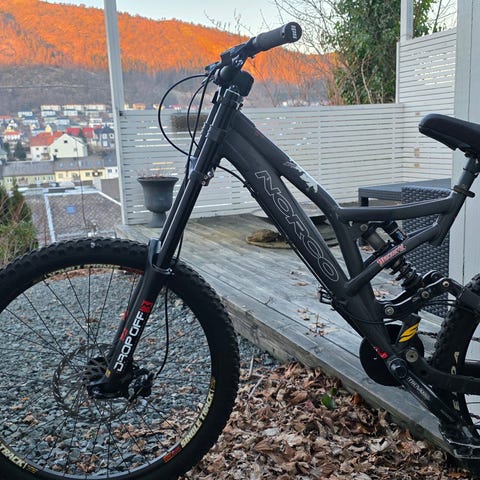 Selges fordi jeg ikke lenger har tid til å bruke den. Sykkelen er svært stabil og trygg i nedkjøringer med slakk styrevinkel og lavt tyngdepunkt. Ideell for deg som sykler røff sti og bikepark eller enduro, men den står ikke tilbake for en enkel stitur med oppoverbakker og teknisk terreng.