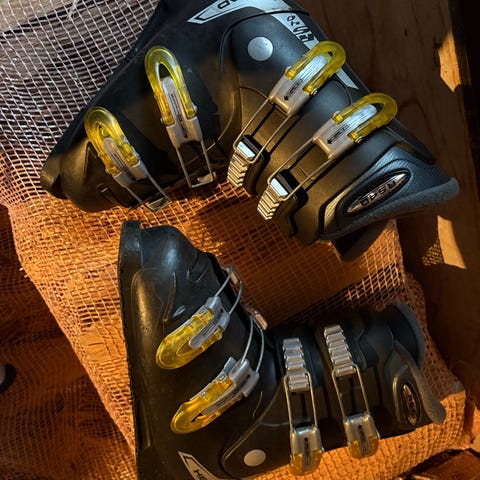 Head skistøvler i svart og hvit farge med røde spenner. Kjøpt brukt og brukt i en sesong av oss. Mye bruk igjen. Ca str 36 .