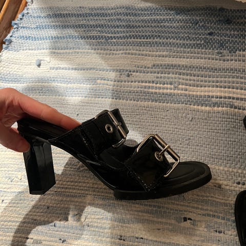 Kule Samsøe Samsøe skoletter. Svarte med glitter, str 39. God stødig hæl, 10,5cm høye. Glidelås på innsiden.