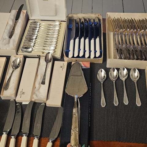 1) Stor skje 19,2 cm. Vekt 46 gram. Kr. 1000