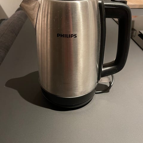 Philips HD 2001/A vannkoker i grønn farge. Modellen har en rund form med håndtak i kontrastfarge. Vannkokeren har en effekt på 220-240V og 50-60 Hz. Den er utstyrt med en avtakbar base for enkel bruk og rengjøring.