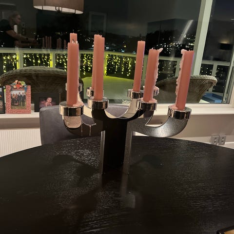 2 stk Georg Jensen lysestaker i metall med moderne, buet design. Passer til dekorasjon og belysning i hjemmet.
