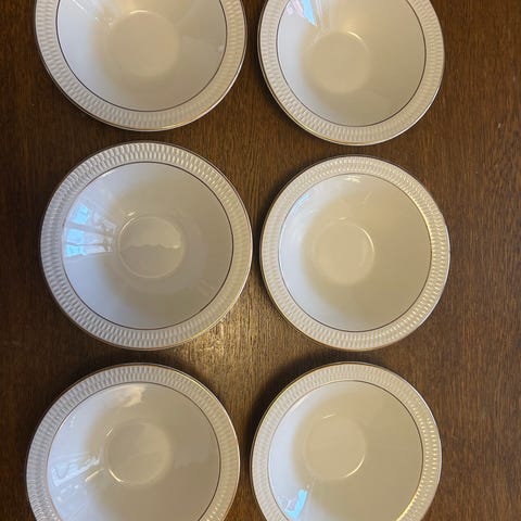 Pent brukt middagsservice i fra Porsgrund. 11 stk middagstallerkener og 11 stk suppetallerkener. På noen av middagstallerkene er gullpynten litt slitt etter normal slitasje. Ingen skader i porselenet. Selges samlet. Må hentes