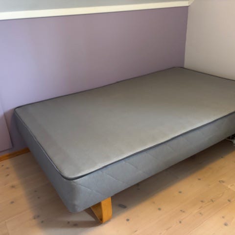 IKEA STAVANGER rammemadrass med overmadrass. Madrassen har sort farge. Den er kjøpt ny i mai 2024. Stått på gjesterom og kun bruk 3 ganger. Kjøpt for 6000kr, selges for 1000kr ved rask henting.