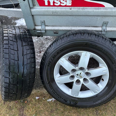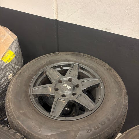 Dekkene har vert brukt på ein pajero sport