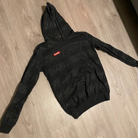 Fendi Roma T-skjorte i svart farge, laget av bomull. Størrelse S for herre. T-skjorten har trykket logo på fronten.
