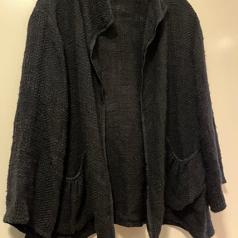 Oversized ytterjakke fra Masai. Jakken er A-line formet, svart farge og vil nok kunne passe alt fra XS til en S/M. Brukt, men i god stand.