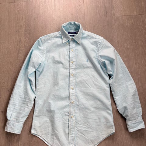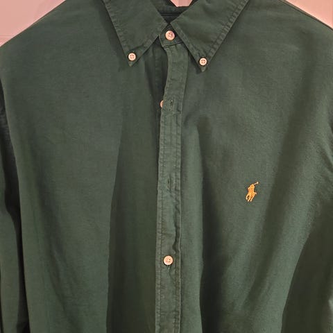 Ralph Lauren Polo skjorte i grønn farge, laget av lin. Skjorten er herremodell i størrelse XS. Den har knappelukking og klassisk krage.