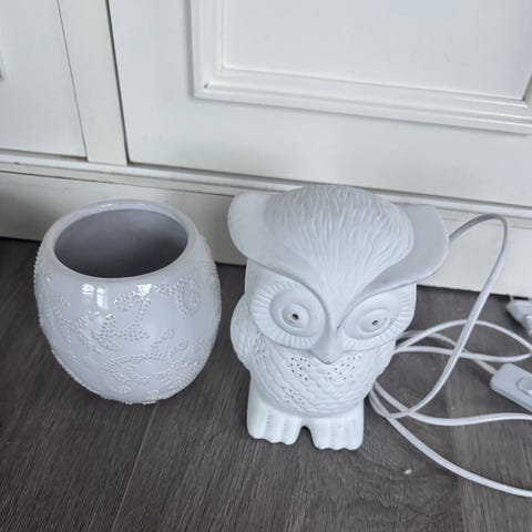Kjempesøt uglelampe som gir fint og stemningsfullt lys. 17 cm høy. I keramikk.