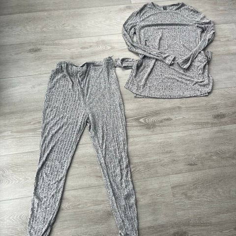 Godt brukt, men fortsatt myk og deilig. Har et lite hull på det ene benet som ikke går igjennom begge lag med tøy, bare det ene. Mulig noen svake flekker og har små nupper som dette stoffet får etter vask. selges som den er