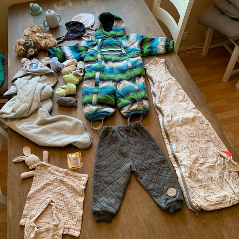 Selger pent brukt vinterbekledning til baby i størrelse 74. Perfekt pakke for deg med baby 6-9 mnd i vinter. Votter og balaclava størrelse 0-1 år. Kan kjøpes som pakke for 525kr eller separat.