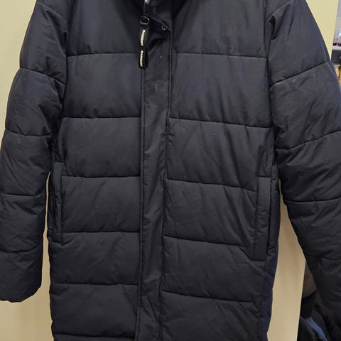 Meget varm og god vinterjakke/ kåpe herre i str XL. Fra Selected Homme. Med hette. Farge mørk blå. Fremstår som strøken. Kun brukt et par ganger. Selges da den ble feil str for meg. Ny pris var 1899kr. Selges for 200kr.Kan sendes.