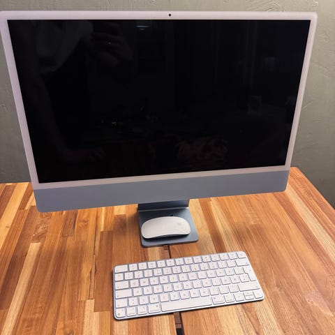 Skjermen er 43,9" og justerbar i både høyde og vinkel.