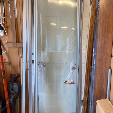 2 x Glass dører merke Celeste i klart glass med kromfarget ramme fra Megaflis 90 x 90 h 197,4 ny pris kr 2 599,- pr stk selges for kr 1 100 ,- pr stk. med dusj batteri.