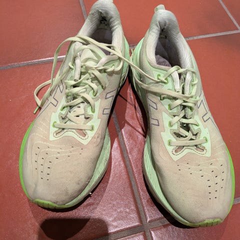 Brooks løpesko i størrelse 44, oransje farge. Egnet for løping. Brukt på 3 korte løpeøkter på mølla, blir noe for mykt for mine bein