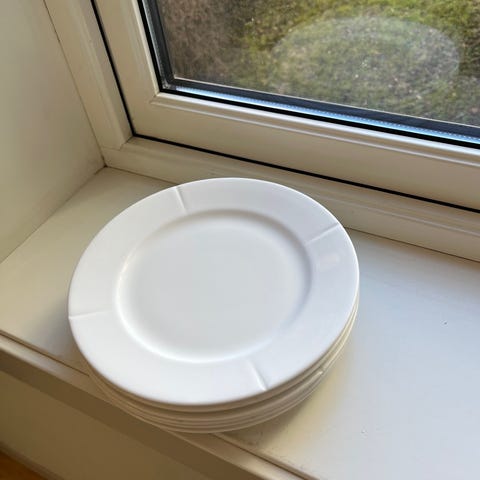 Pent brukt. Ser ut som det er noen svake merker etter bestikk på den ene tallerken, men ikke synlig nok at det kommer frem på bilder, derfor ikke bilde av tallerkenen.