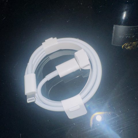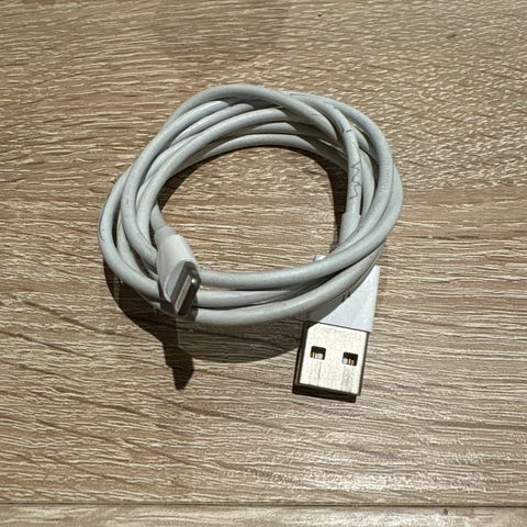 Apple ladekabel for lading av kompatible enheter. Kabelen har Lightning-tilkobling og er hvit.