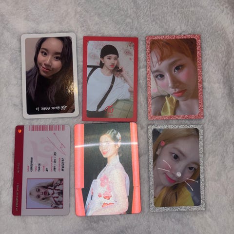Hei, jeg selger disse TWICE Sana fotokortene. Alle er i god stand. 30kr per, men går gjerne litt lavere hvis du kjøper flere.