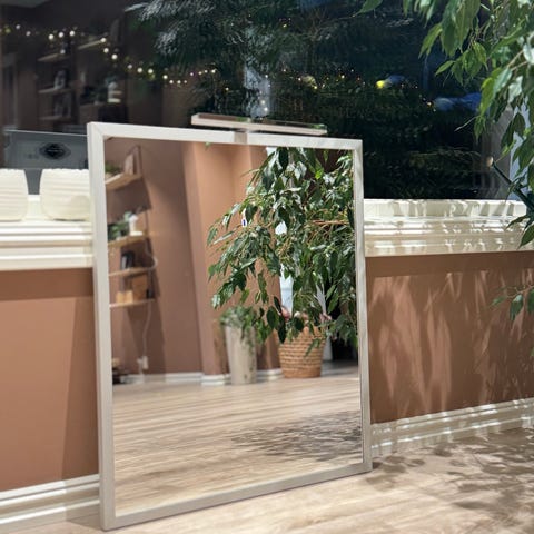 Speil med ramme og tilhørende trehylle. Passer til oppheng på vegg, egnet for baderom eller andre rom hvor speil og oppbevaring ønskes. Materiale i tre, farge brun.