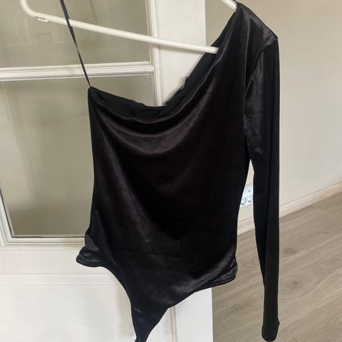 Det er en fin sort stretchy genser med et erme med sleng. Det er også litt stretch i siden som gir en fin fasong!