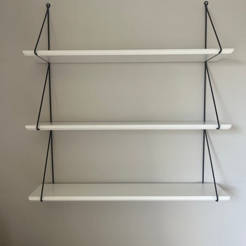 2 stykk vegghylle , 80 x 30 og 80 x 20, med 4 hylleknekter. 300 kr for begge eller 150 pr hylle.