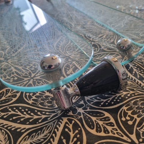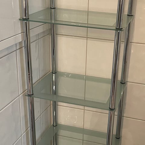 Vi bruker disse hyllene på badet. De passer veldig godt som baderom- møbel.