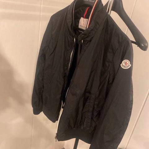 Moncler Jakke i størrelse S, svart farge, laget av dun. Jakken er designet for menn og egner seg til utendørs bruk.