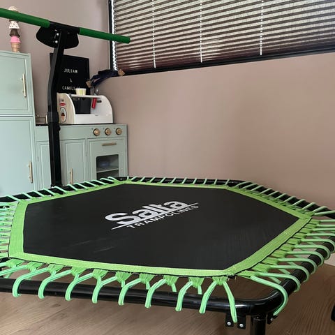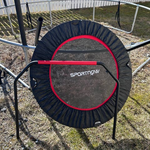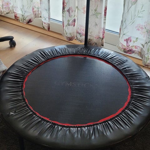 Ultrasport trenings-trampoline, Ø ca. 135 cm, 5-trinns høydejusterbart håndtak, svært stillegående strikkfjæring, egnet for jumping fitness og innendørs bruk, komfortabelt håndtak med skumgummibelegg