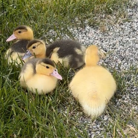 Stor, fin moskusandrik ser etter nytt hjem. Han er mørk gråspraglete, har store øyne og tøff andrik-sveis. Klekket i juli 25.