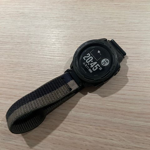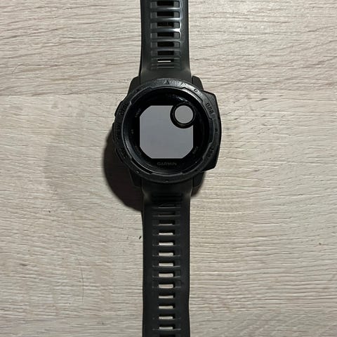 Garmin Instinct smartklokke med oransje farge. Klokken har robust design og er egnet for utendørsaktiviteter og trening.