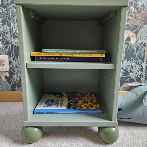Fint plass til nattlampe, drikkeflaske, noen bøker etc. Farge grønn.