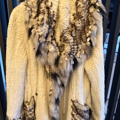 Myk og varm pels. Aldri brukt. Har merkelappene på. Kjøpt for flere år siden. Passer til selskap og hverdag. Fargen er høstrød pels-bunn med lyse ender.