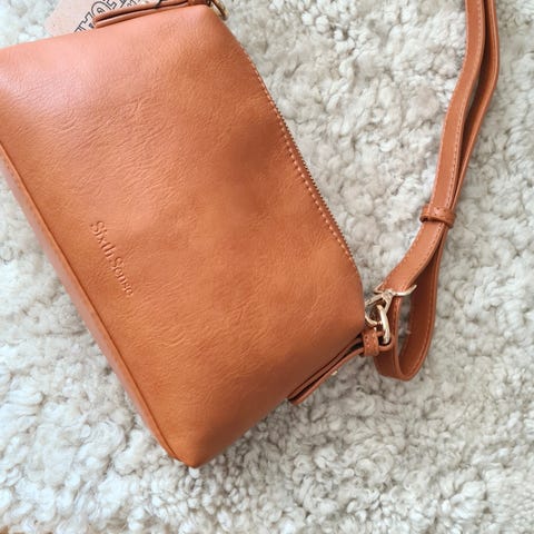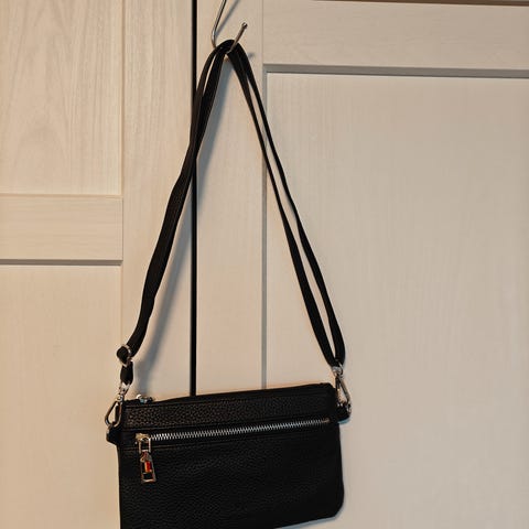 Sort veske fra sixth sense. Lomme foran, lomme med glidelås bak, lommer inni. Høyde ca 32 cm, bredde ca 28 cm, dybde ca 4 cm