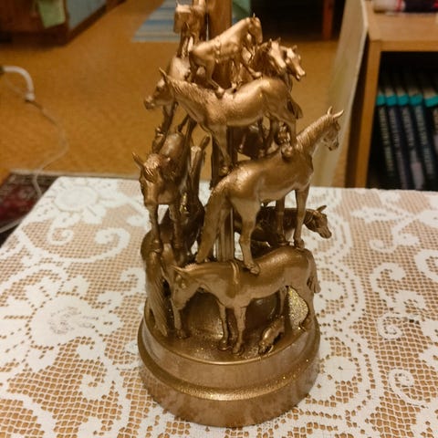 Hestelampe i tre med led-lys