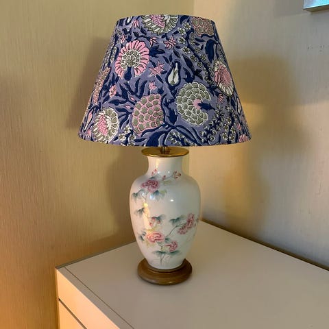 Keramikklampe med ny håndlaget skjerm fra Studio Bazar Høyde opp til sokkel 23 cm til toppen av skjermen 40 cm