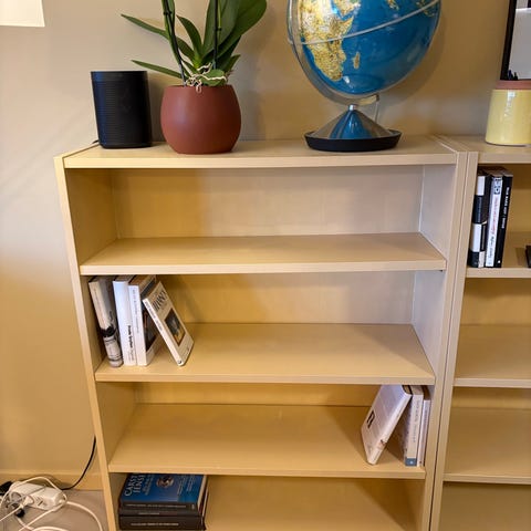 Pent brukt Billyhylle fra IKEA til salgs. Noen skrapemerker i den ene hyllen, men det synes nesten ikke. Overhylle følger med. Må hentes.
