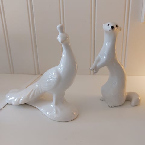 Fine hvite porselensfigurer av due og fasan fra Portugal. Duen ser jeg er fra Elpa.