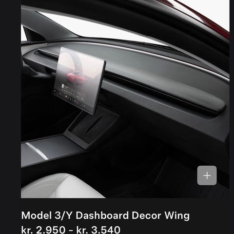 Tesla Model 3/Y Dashboard Decor Wing i Charcoal Suede. Dekorasjonen er laget for å oppgradere dashbordets estetiske stil.