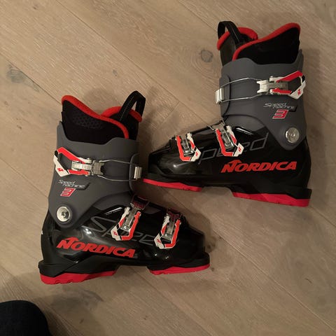 Selger et par Nordica Speedmachine J2 slalomsko (alpinstøvler) i størrelse 21,5 Mondo (se bilde).