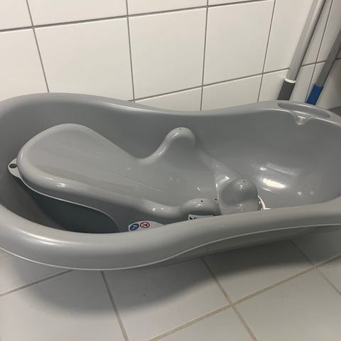 Plastbalje gis bort. Egentlig et babybadekar, men har blitt brukt til klesvask. Ca. 70x42 cm. Det gar bruksmerker i form av overflatiske riper og merker, men er helt og i god stand.