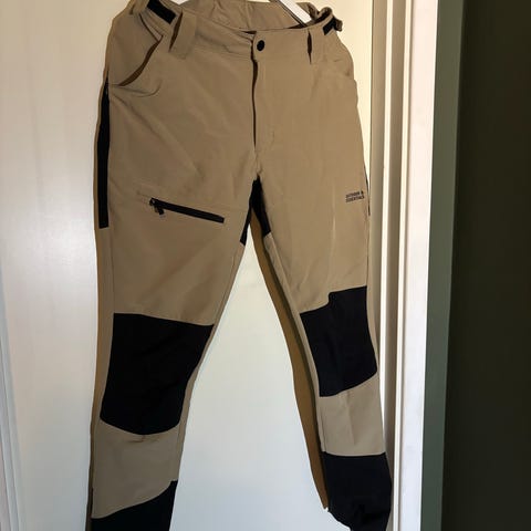 bukse for dame i størrelse 40. Buksen er svart og designet for aktiviteter som fotturer. Den har funksjonelle detaljer som glidelåslommer.