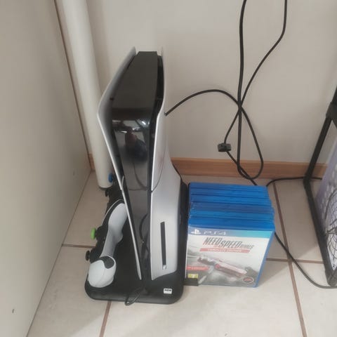 Veldig lite brukt Playstation 5 spillkonsoll med to kontrollere. Inkluderer spillene Astro Bot og Mortal Kombat.