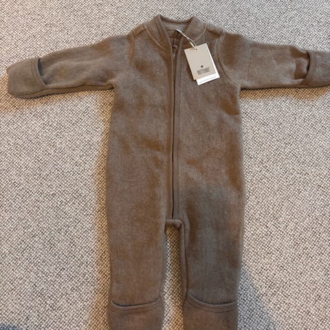HUTTEliHUT heldrakt i størrelse 74 for barn. Fargen er brun, laget av alpakkaull, og passer for både jenter og gutter.