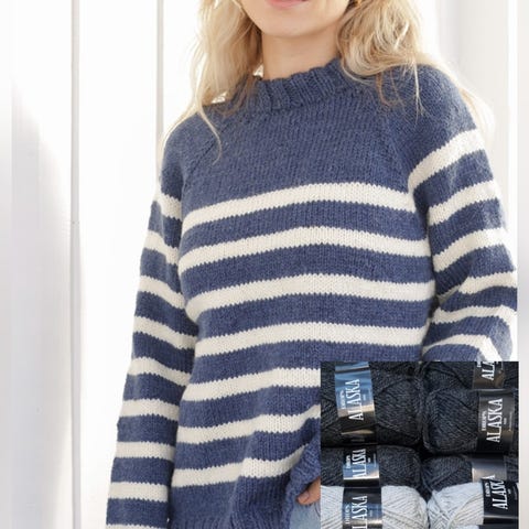 Idun strikkepakke/ garnpakke str L/ jeansblå.