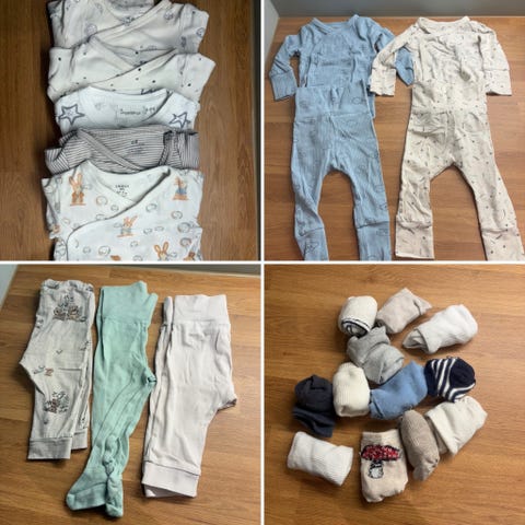 Alt er pent brukt og uten flekker/hull. Str 62. Klærene er fra cubus, lindex, kappahl, newbie og h&m. Noen av tinga er så vidt brukt.