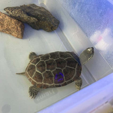 Har 2 skilpadder til salgs. Shelly og sammy. Shelly adopterte vi i 2022 (har ikke papirer) men vi fikk ho når ho var ett år ca. Sammy er kjøpt i dyrebutikk i 2023 og følger med papirer. Kan følge med alt av utstyr. Akvarium, lamper, solplass til skilpaddene, stein og annet tilbehør. Får ikke lagt til bilde men send meg en melding så sender jeg gjerne. De er vandt til barn og Sammy elsker oppmerksomhet, Shelly er litt mer sky 😊 pris kan diskuteres ved hurtig avgjørelse og rett hjem.