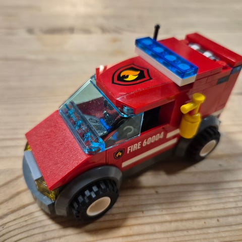 Kun brannbil med figur, tegning følger ikke med. Tilhører settet Fire Station 60004. Bilen kan demonteres før forsendelse hvis ønskelig. Se gjerne en av mine andre annonser for å slå sammen flere produkter til én forsendelse.